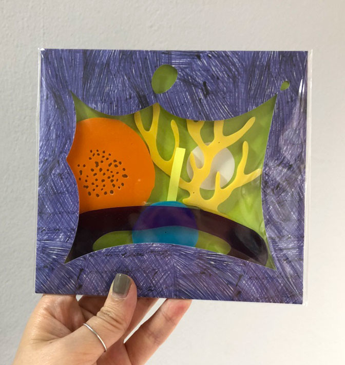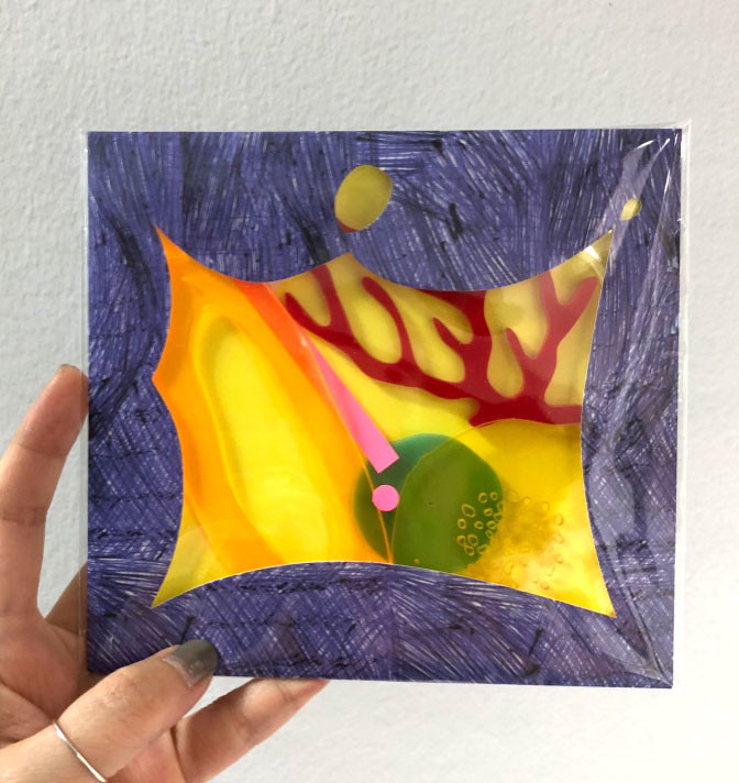 투광되는 노란색 나뭇가지 그리고 형광 연두의 작은 동그라미가 들어 있습니다.
